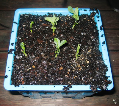 In our vegie box a couple of weeks ago there were some shelling peas. That was a great novelty, I am 29 years old and had never shelled a pea before! Some of the peas were beginnin to sprout, so I planted them to see if they'd grow, and wonderfully they seem to be.